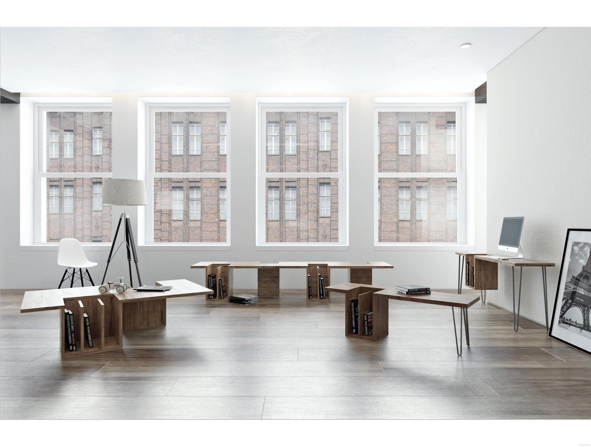 Дизайнерский письменный стол One-Two High Table изготовлен в современном стиле из массива натурального дерева (лиственница).